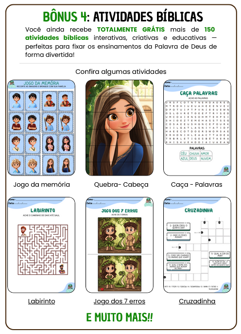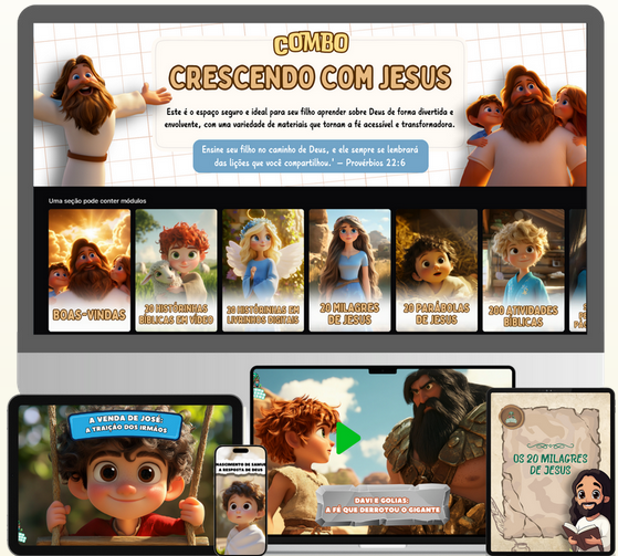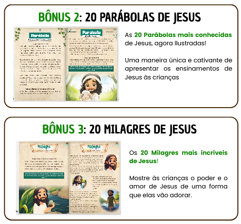 Além disso…Ganhe mais 4 bônus exclusivos aoadquirir o Combo Crescendo com Jesus hoje!